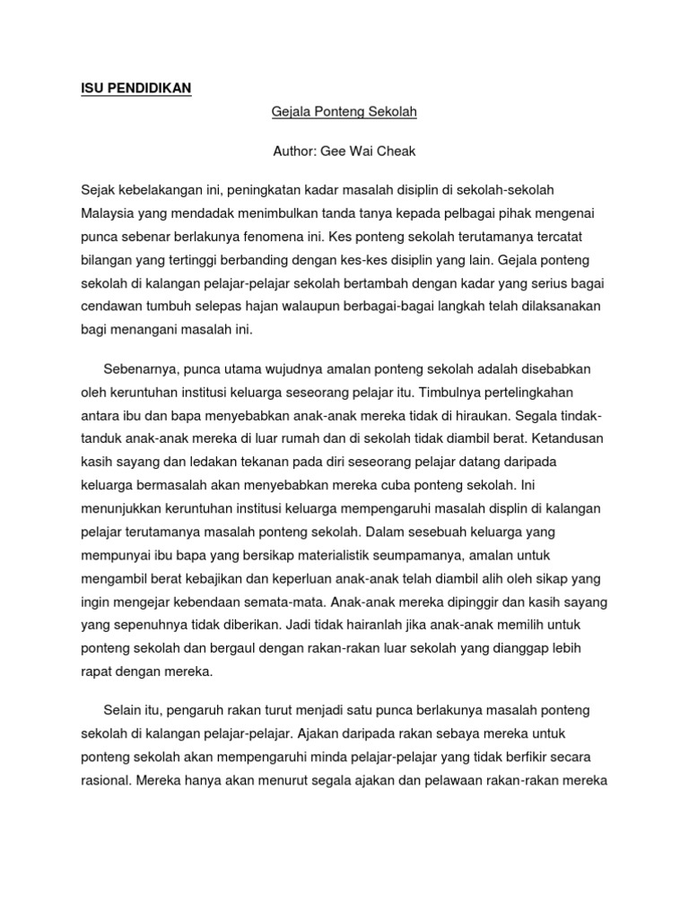 Isu Pelajar Ponteng Sekolah Pdf